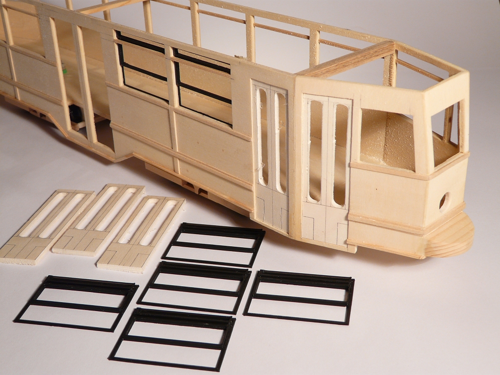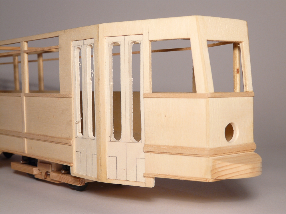 ![]() .....so dass das Wagenende dem Vorbild wieder ein Stück näher gekommen ist (linkes Foto). Auf der rechten Seite sind die Türen zu sehen, die es galt, so naturgetreu wie möglich nachzubilden. |