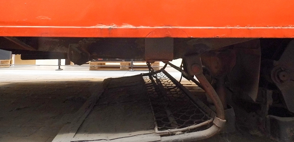 ![]() So wurde das fertige Fanggitter unter dem Fahrerstand montiert..... |