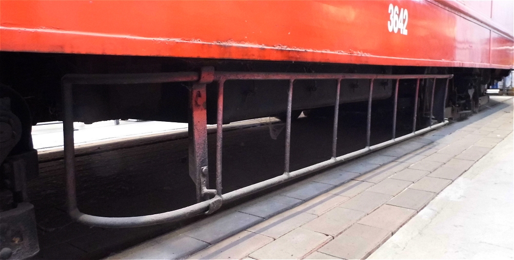 ![]() Das in etwa vorbildgetreues Fahrzeugende - zumindest was den Ruhebügel für abgesenkte Stromabnehmer in Betriebspausen anbelangt. |