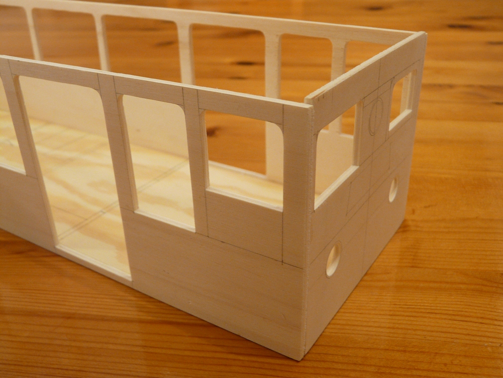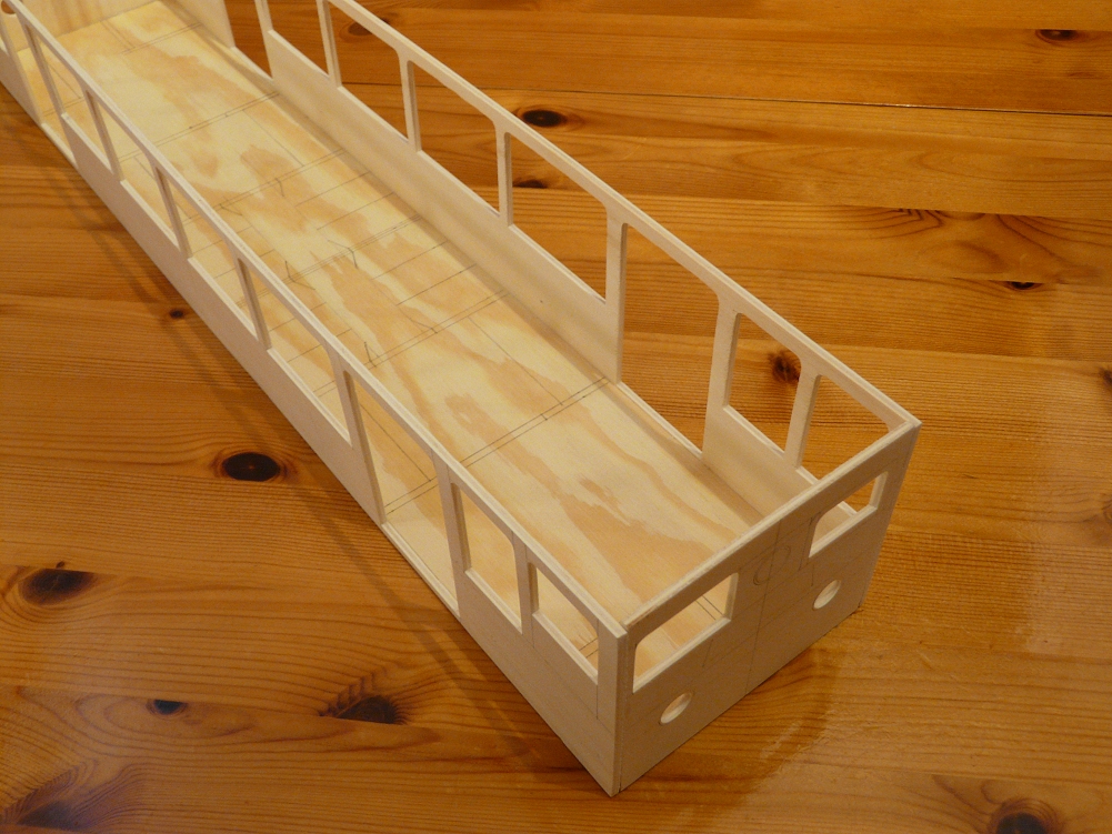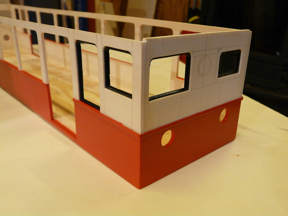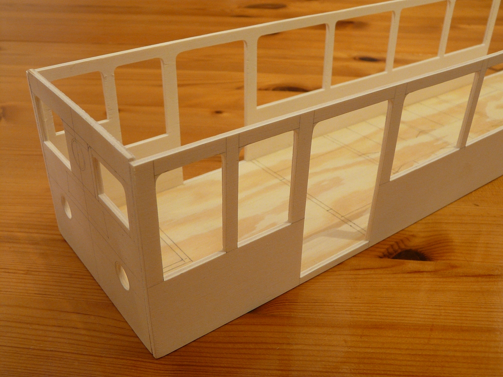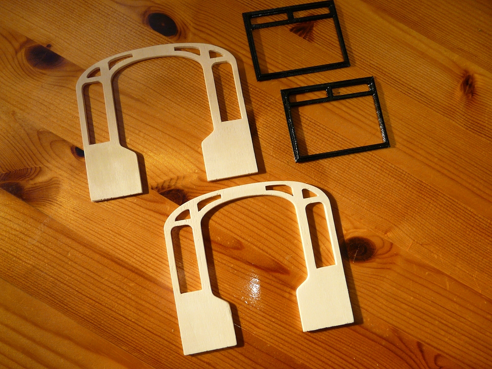 ![]() Die Trennwände aus Sperrholz und erste Fenster noch aus dem "alten" (vellemann) 3D-Drucker. |