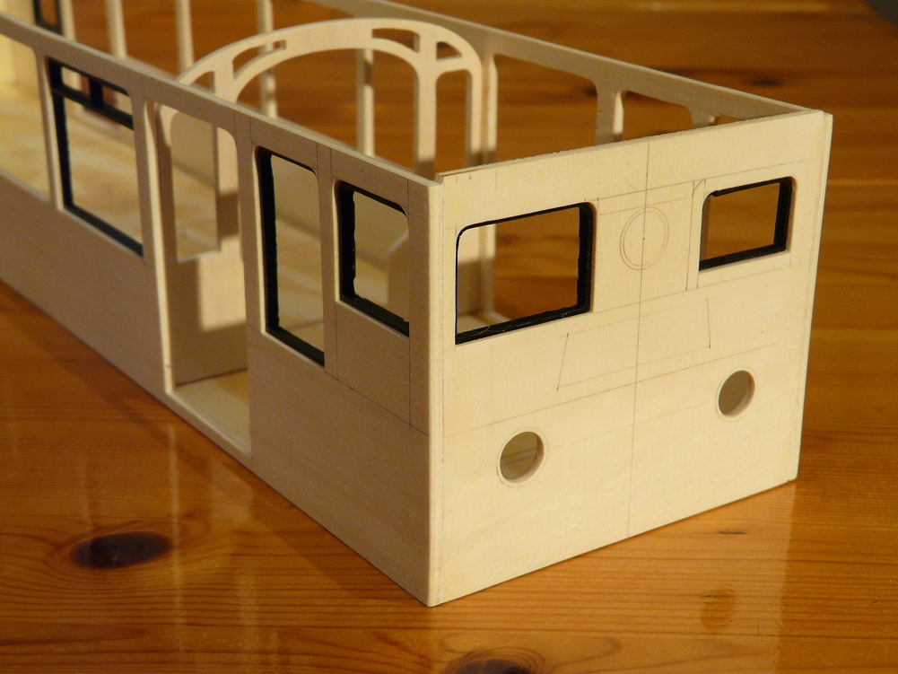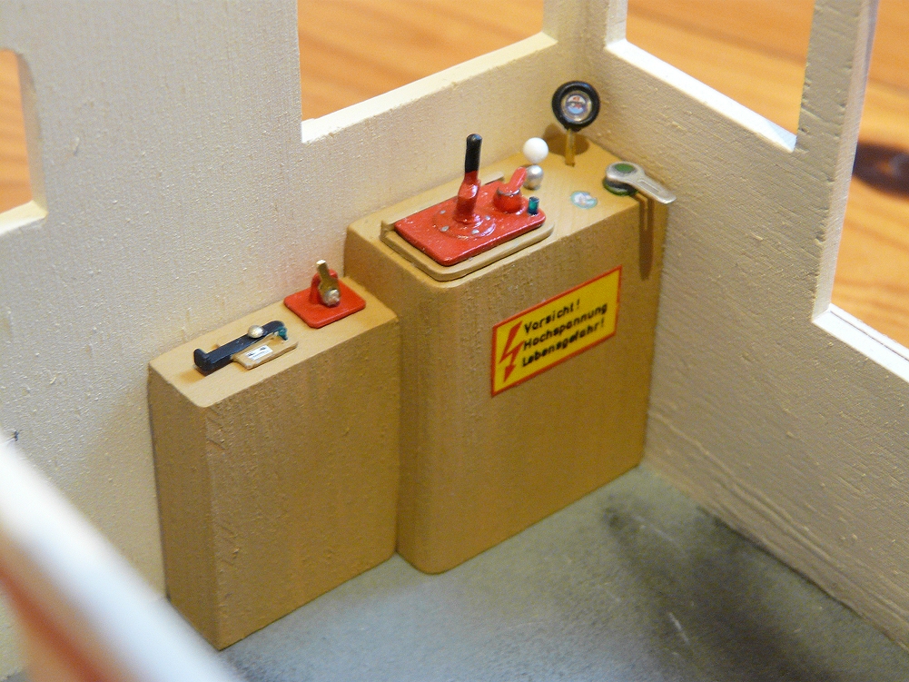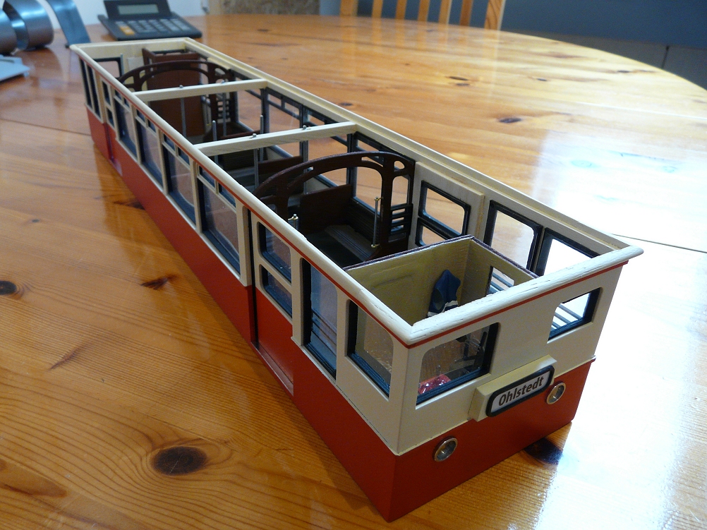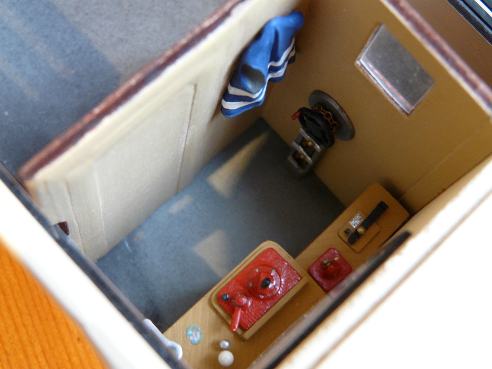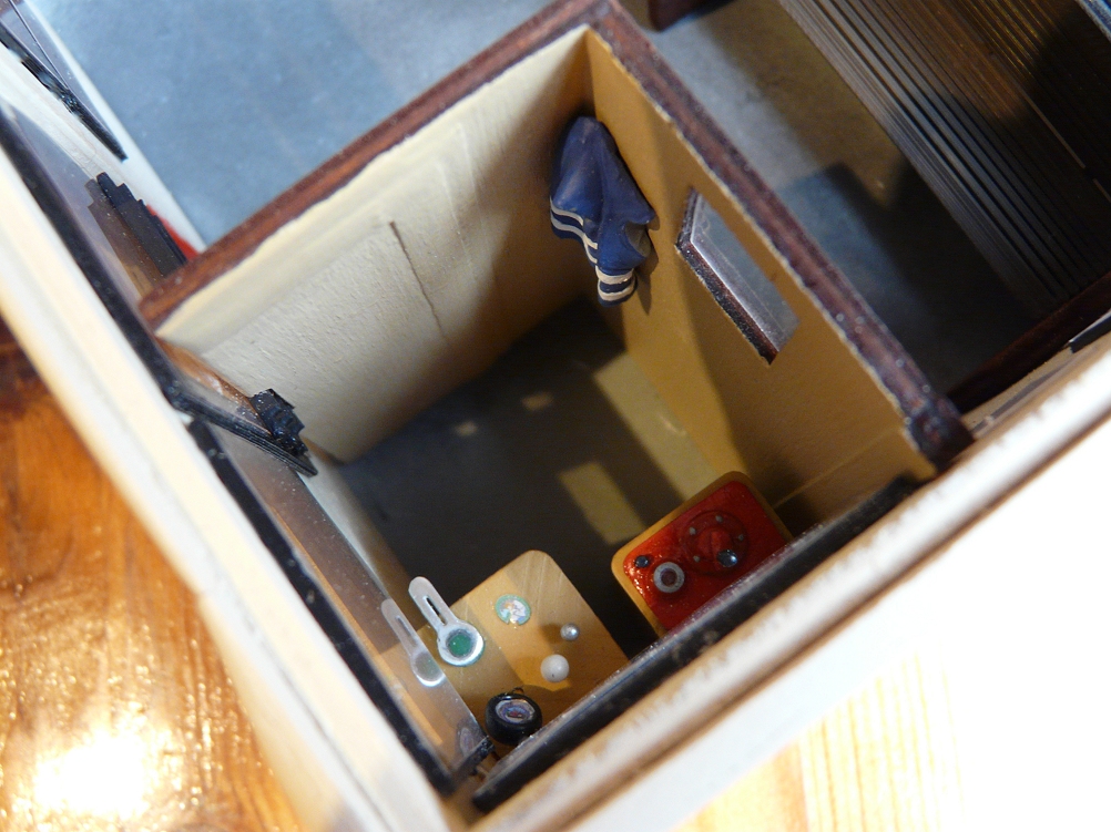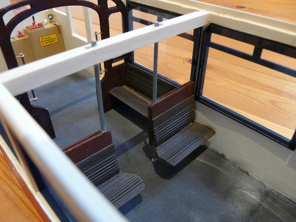 ![]() Der vordere Führerstand bereits mit den Fahrtreglern bestückt. Es fehlen noch die Fenster und die Rück- und Seitenwände. |