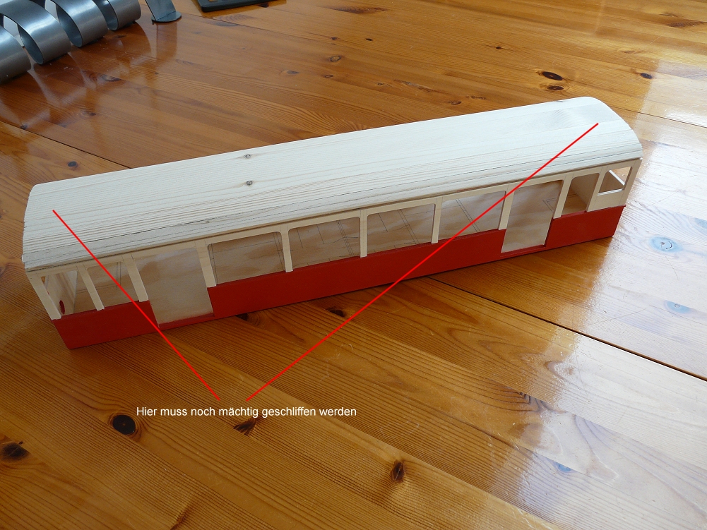 ![]() Die Dachkonstruktion des U-Bahn Wagens ist erstellt. Natürlich fehlt noch der Feinschliff. Besonders die Abschrägung nach vorn und hinten ist noch fällig. |