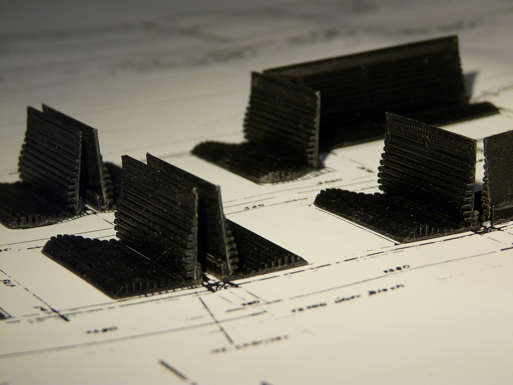 ![]() Dies ist quasi eine Stellprobe der komplett mit dem 3D-Drucker erstellten Bänke. Ursprünglich wollten wir nur die Unterkonstruktion mit dem 3D-Drucker produzieren und die Beplankung aus dünnen Echtholzleisten ausführen. Letztendlich haben wir uns dann doch für die schnellere und präzisere Variante aus dem 3D-Drucker entschieden. |