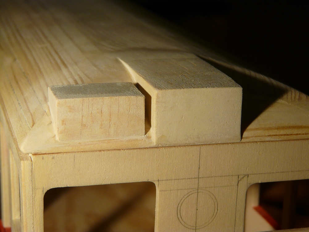 ![]() So, nun ist das Dach auch abgeschrägt und mit den kleinen Hutzen versehen. Die Abschrägung war eine Arbeit für den Bandschleifer, da die Leisten für die Dachkonstruktion mangels Alternativen (in Pandemie-Zeiten) doch einigermaßen stabil ausgefallen waren. |