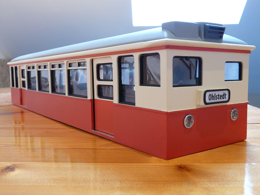 Wenn dann der Zug in den Tunnel fuhr, war dies spannend und etwas gruselig zugleich. Die alten Tunnel und Stationen wie z.B. Klosterstern oder Hallerstraße (U1); Emilienstraße oder Christuskirche (U2) schienen wie die alten Hallenbäder in Hamburg (Kellighusenstraße oder Hohe Weide) noch aus der Kaiserzeit zu stammen. Sie hatten einen gekachelten Charme längst vergangener Tage. Auch diese alten Wagen verströmten eine Aura längst vergessener auch schlechter und dunkler Zeiten. Manchmal glaube ich sogar noch den ganz speziellen Geruch der Hamburger Hochbahn am Beginn der 60er Jahre in der Nase zu haben (1962 zog meine Familie dann nach Offenbach/Main). Die Luft in den alten Stationen roch immer etws abgestanden und die alten Wagen quietschten in den manchmal etwas (zu) engen Kurven. Wer sich für die Historie der Hamburger Hochbahn interessiert, dem lege ich das "Hochbahnbuch" sehr ans Herz (www.hochbahnbuch.de). Wie vorgesehen wurde der Wagenkasten wiederum überwiegend aus Sperrholz (3 mm) gefertigt. Fensterrahmen, Sitzbänke und Spezialteile (?) wurden mittels eines 3D-Druckers der Marke „Bresser“ gedruckt und zuvor am PC mittels eines CAD-Programms erstellt. Die Wahrscheinlichkeit des Scheiterns war durch die Erfahrungen mit dem Straßenbahnmodell der Hamburger Hochbahn diesmal eher gering. Aber: Der Teufel steckt immer im Detail. Aber sehen Sie selbst, ob ich den Mund diesmal dann doch etwas zu voll genommen habe, und Sie den Versuch als eher so „mittel“ bewerten. Ich bin jedenfalls wieder ein wenig stolz auf meinen Hamburger U-Bahn Wagen, mit dem ich gern wieder fahren würde, wenn die blöde Pandemie es uns allen erlauben würde. |