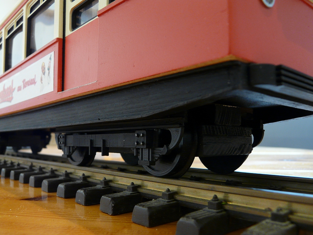 ![]() Sowohl die Fahrwerksmimik als auch die Räder stammen aus dem 3D-Drucker. Schön, dass der Waggon in den ersten Rollversuchen (er ist aber als Standmodell gedacht) relativ ruhig auf dem Gleis zu bewegen war. Es ist schon erstaunlich, was man selbst in Pandemiezeiten auf die Räder stellen kann, wenn man sich unwissendlich zuvor einen Fundus an Modellbau- Material zugelegt hat. |