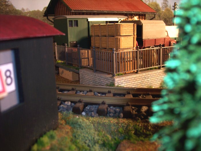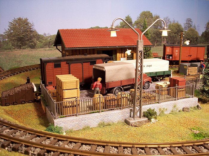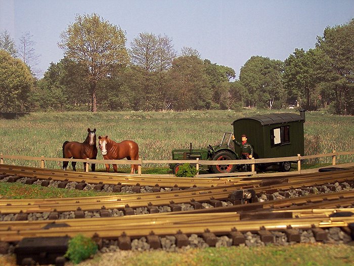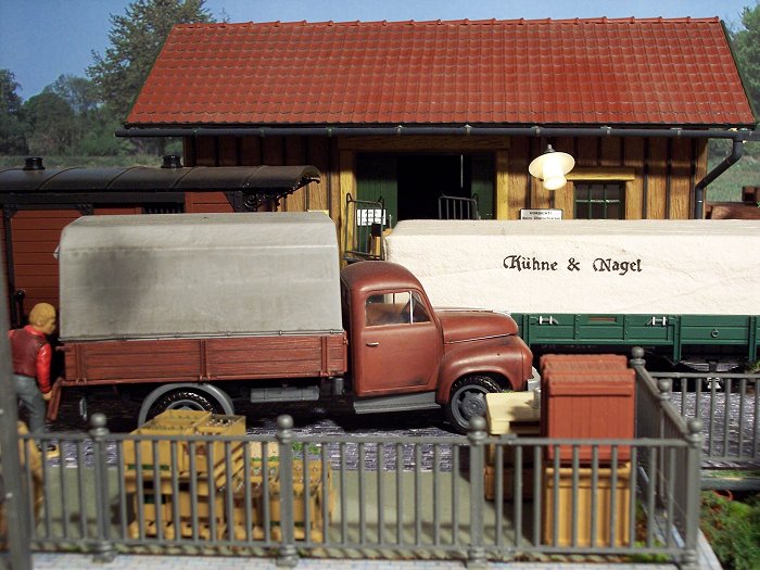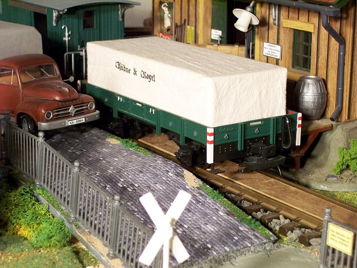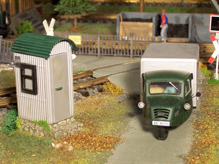 Hier unser zweiter Goliath GD 750 von Borgward mit dem kleinen Streckenposten-Haus am Bahnübergang.