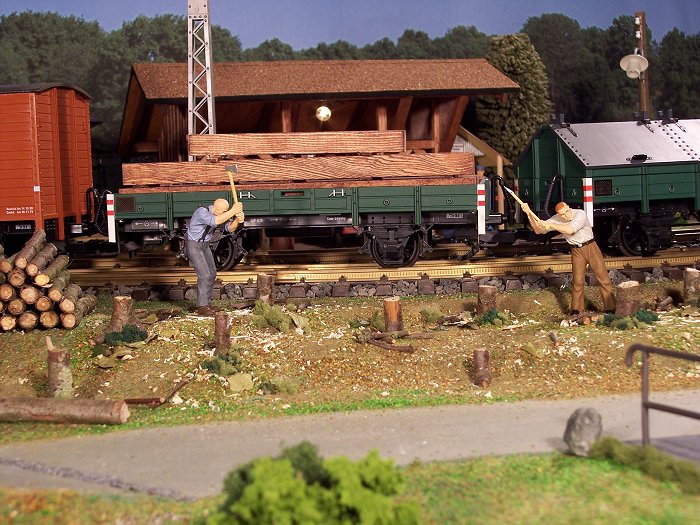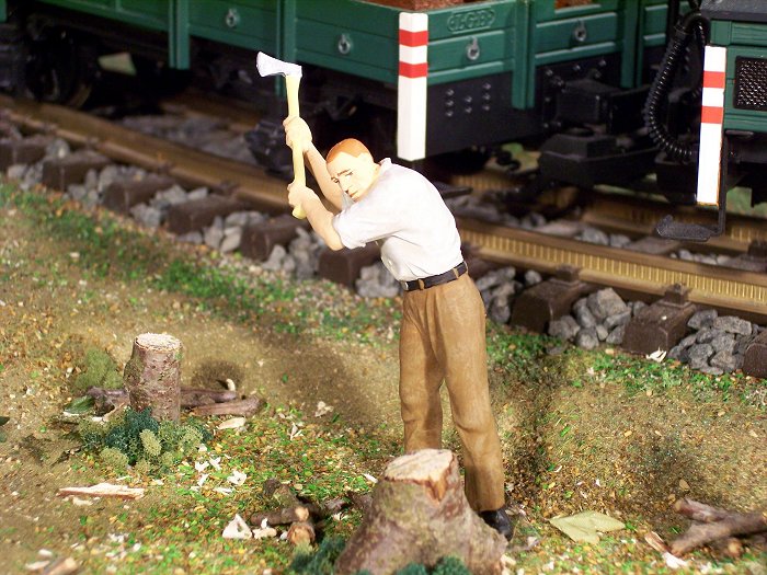 Unsere Holzfäller, die den gesamten Wald gerodet haben; Bäume auf Modellbahnanlagen sind immer ein