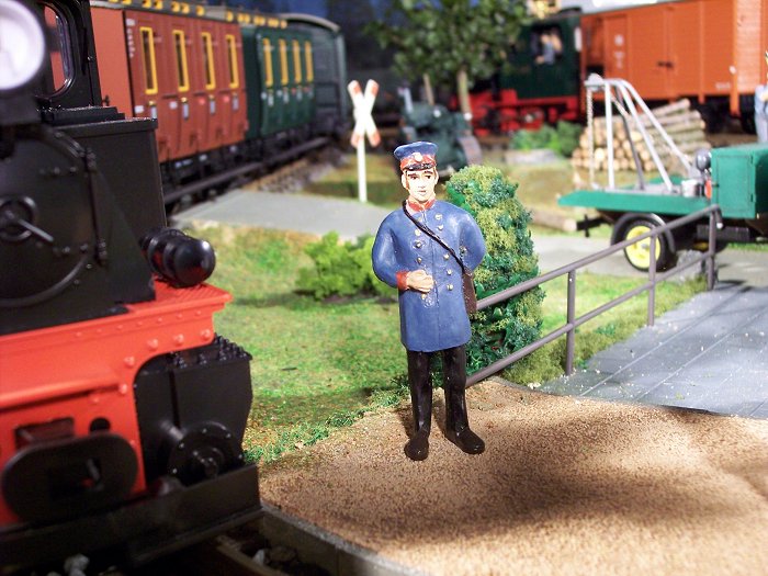 Unser neuer/erster/einziger Bahnhof - ...einem stolzen Bahnhofsvorsteher (der jetzt Trambahnfahrer ist) mit altem Personenzug.