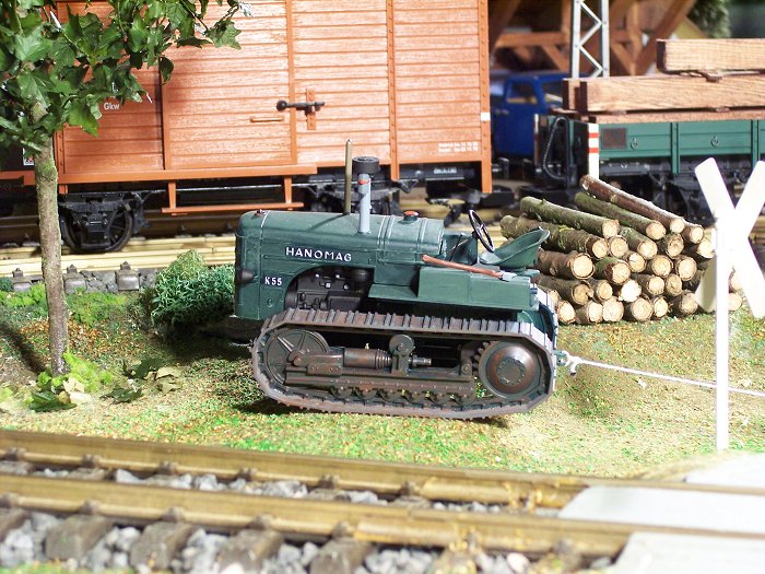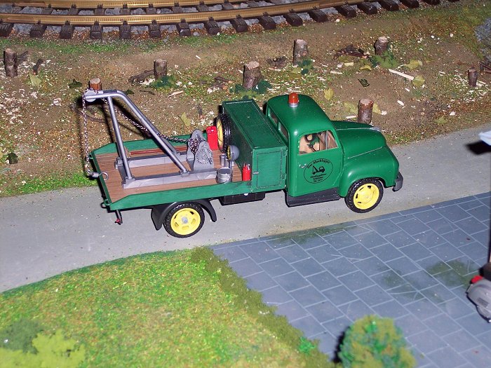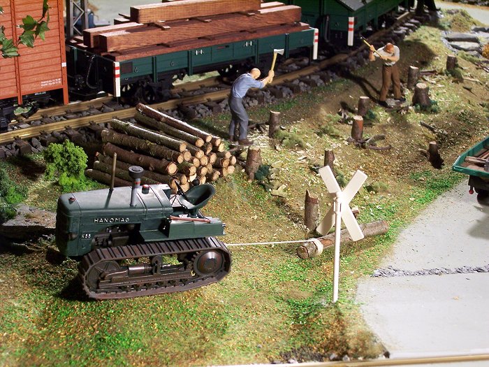 Der Hanomag (ein Wiking-Modell ursprünglich in "Plastik-Einheitsgrün") hilft den Holzfällern und
