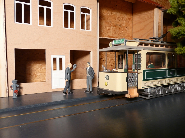 Unser Stationsvorsteher von der Lehmann-Anlage wurde zwischenzeitlich zum Trambahnfahrer befördert. Übrigens verlor er dabei