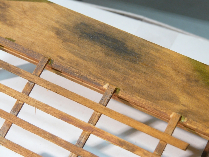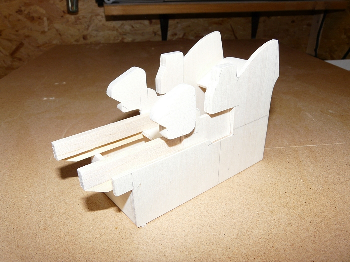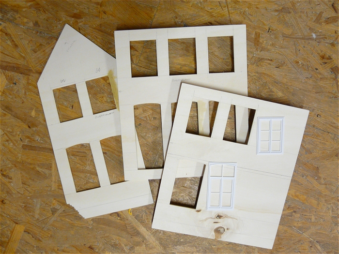 Hier ist die Sägeschablone zu erkennen - samt der neuen Fenster und der Bedachung. Die Fenster sind wiederum von Modellbau Heyn.