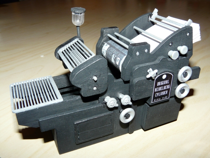 Eine Druckmaschine aus Sperrholz. Viel Rechnerei und als Ergebnis ein blasses "Gestell".