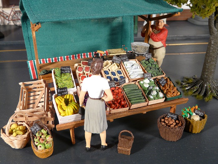 Bereits in Arbeit sind die Details, wie einen Stand eines Gemüsehändlers.