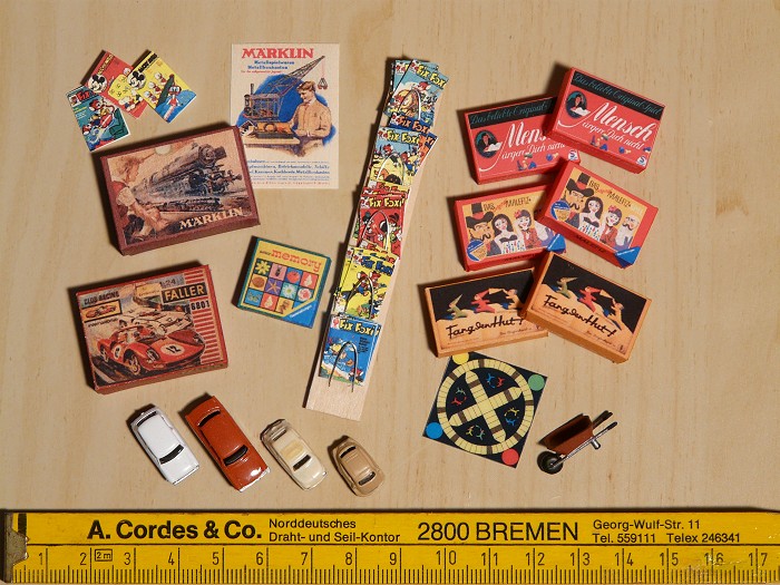 Was ist ein Spielzeugladen ohne Spielzeug. Also wurden Schachteln im Stile der Zeit (50er-Jahre) produziert. Damit Sie einen