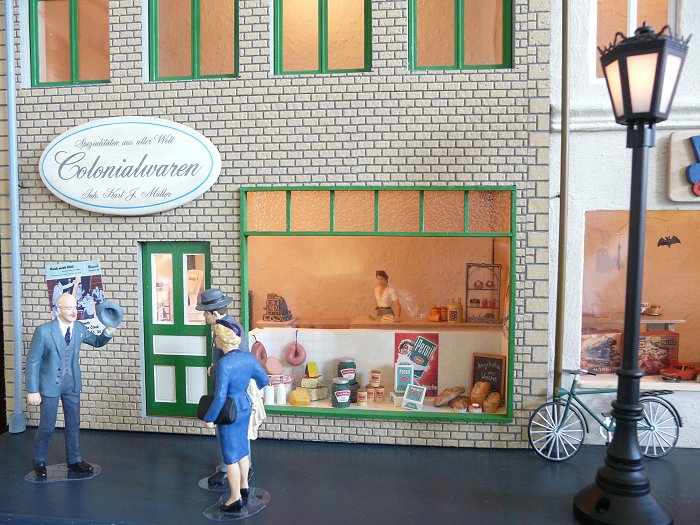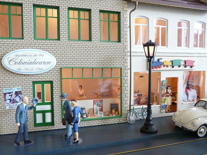 nur so sprudelten. Wir planten eine kleine Ladenzeile mit einem Colonialwaren-Laden, einem Spielwarengeschäft,