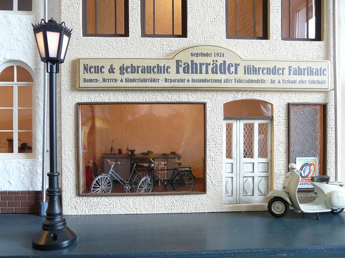 Hier ist die Fahrradhandlung noch ohne jegliche Deko zu sehen. Vielleicht ist der Vorbesitzer