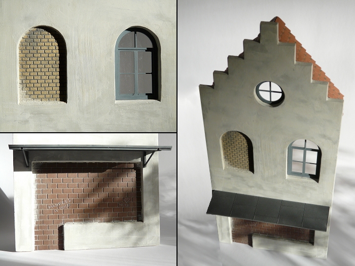 einige Veränderungen vorgenommen (Giebelabschluss - nicht zu sehen - , Regenrinne und Fensterbänke
