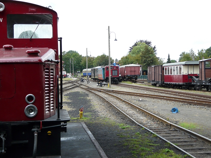 5 Diesellokomotiven und 6 Triebwagen. Gästen sind an Fahrtagen mehr als 70 Personen-, Güter- und Bahndienstwagen zugänglich.