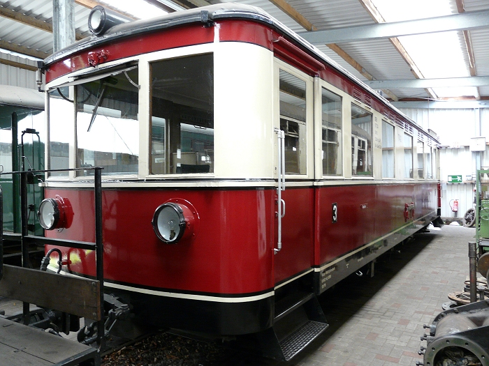 Dies ist der Triebwagen T 42 der Dessauer Waggonfabrik, der 1939 gebaut wurde und seit 1974 im